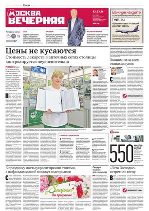 «Вечерняя Москва» — ежедневная российская вечерняя газета, старейшее из вечерних изданий в России, учрежденное в 1923 году. Выходит пять дней в неделю, кроме субботы и воскресенья. Отличается тем, что рассказывает о событиях еще не завершившегося дня. Оперативно освещает хронику и особенности жизни Москвы, охватывает все слои общества и большинство профессиональных и возрастных групп читателей.Издание представлено тремя выпусками – утренним ежедневным, вечерним (выходит три раза в неделю), еженедельным (выходит по четвергам).