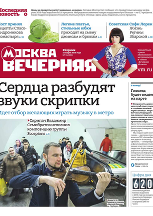 «Вечерняя Москва» — ежедневная российская вечерняя газета, старейшее из вечерних изданий в России, учрежденное в 1923 году. Выходит пять дней в неделю, кроме субботы и воскресенья. Отличается тем, что рассказывает о событиях еще не завершившегося дня. Оперативно освещает хронику и особенности жизни Москвы, охватывает все слои общества и большинство профессиональных и возрастных групп читателей.Издание представлено тремя выпусками – утренним ежедневным, вечерним (выходит три раза в неделю), еженедельным (выходит по четвергам).