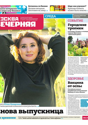 «Вечерняя Москва» — ежедневная российская вечерняя газета, старейшее из вечерних изданий в России, учрежденное в 1923 году. Выходит пять дней в неделю, кроме субботы и воскресенья. Отличается тем, что рассказывает о событиях еще не завершившегося дня. Оперативно освещает хронику и особенности жизни Москвы, охватывает все слои общества и большинство профессиональных и возрастных групп читателей.Издание представлено тремя выпусками – утренним ежедневным, вечерним (выходит три раза в неделю), еженедельным (выходит по четвергам).