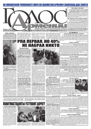 Общественно-политическое издание "Голос Армении" выходит с мая 1991 года и является наиболее популярной, авторитетной и цитируемой русскоязычной газетой страны. Спектр затрагиваемых проблем - самый широкий: от политики и экономики до культуры и социальных сетей, а авторы "Голоса Армении" по праву составляют золотой фонд современной армянской журналистики.