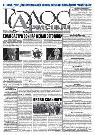 Общественно-политическое издание "Голос Армении" выходит с мая 1991 года и является наиболее популярной, авторитетной и цитируемой русскоязычной газетой страны. Спектр затрагиваемых проблем - самый широкий: от политики и экономики до культуры и социальных сетей, а авторы "Голоса Армении" по праву составляют золотой фонд современной армянской журналистики.