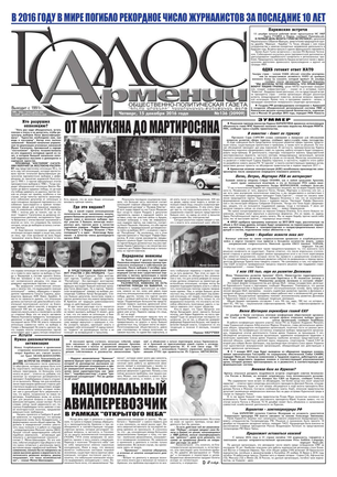Общественно-политическое издание "Голос Армении" выходит с мая 1991 года и является наиболее популярной, авторитетной и цитируемой русскоязычной газетой страны. Спектр затрагиваемых проблем - самый широкий: от политики и экономики до культуры и социальных сетей, а авторы "Голоса Армении" по праву составляют золотой фонд современной армянской журналистики.