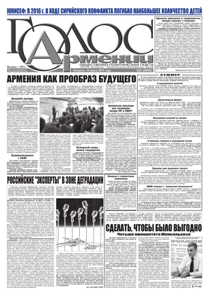Общественно-политическое издание "Голос Армении" выходит с мая 1991 года и является наиболее популярной, авторитетной и цитируемой русскоязычной газетой страны. Спектр затрагиваемых проблем - самый широкий: от политики и экономики до культуры и социальных сетей, а авторы "Голоса Армении" по праву составляют золотой фонд современной армянской журналистики.
