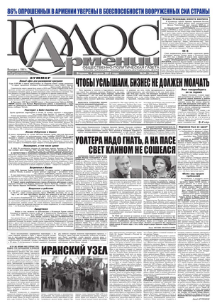 Общественно-политическое издание "Голос Армении" выходит с мая 1991 года и является наиболее популярной, авторитетной и цитируемой русскоязычной газетой страны. Спектр затрагиваемых проблем - самый широкий: от политики и экономики до культуры и социальных сетей, а авторы "Голоса Армении" по праву составляют золотой фонд современной армянской журналистики.