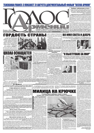 Общественно-политическое издание "Голос Армении" выходит с мая 1991 года и является наиболее популярной, авторитетной и цитируемой русскоязычной газетой страны. Спектр затрагиваемых проблем - самый широкий: от политики и экономики до культуры и социальных сетей, а авторы "Голоса Армении" по праву составляют золотой фонд современной армянской журналистики.