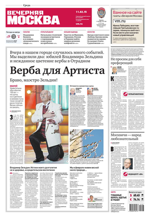 «Вечерняя Москва» — ежедневная российская вечерняя газета, старейшее из вечерних изданий в России, учрежденное в 1923 году. Выходит пять дней в неделю, кроме субботы и воскресенья. Отличается тем, что рассказывает о событиях еще не завершившегося дня. Оперативно освещает хронику и особенности жизни Москвы, охватывает все слои общества и большинство профессиональных и возрастных групп читателей.Издание представлено тремя выпусками – утренним ежедневным, вечерним (выходит три раза в неделю), еженедельным (выходит по четвергам).