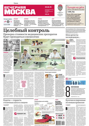 «Вечерняя Москва» — ежедневная российская вечерняя газета, старейшее из вечерних изданий в России, учрежденное в 1923 году. Выходит пять дней в неделю, кроме субботы и воскресенья. Отличается тем, что рассказывает о событиях еще не завершившегося дня. Оперативно освещает хронику и особенности жизни Москвы, охватывает все слои общества и большинство профессиональных и возрастных групп читателей.Издание представлено тремя выпусками – утренним ежедневным, вечерним (выходит три раза в неделю), еженедельным (выходит по четвергам).