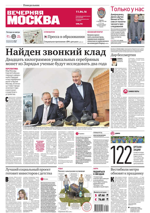 «Вечерняя Москва» — ежедневная российская вечерняя газета, старейшее из вечерних изданий в России, учрежденное в 1923 году. Выходит пять дней в неделю, кроме субботы и воскресенья. Отличается тем, что рассказывает о событиях еще не завершившегося дня. Оперативно освещает хронику и особенности жизни Москвы, охватывает все слои общества и большинство профессиональных и возрастных групп читателей.Издание представлено тремя выпусками – утренним ежедневным, вечерним (выходит три раза в неделю), еженедельным (выходит по четвергам).