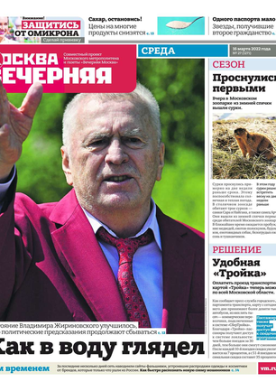 «Вечерняя Москва» — ежедневная российская вечерняя газета, старейшее из вечерних изданий в России, учрежденное в 1923 году. Выходит пять дней в неделю, кроме субботы и воскресенья. Отличается тем, что рассказывает о событиях еще не завершившегося дня. Оперативно освещает хронику и особенности жизни Москвы, охватывает все слои общества и большинство профессиональных и возрастных групп читателей.Издание представлено тремя выпусками – утренним ежедневным, вечерним (выходит три раза в неделю), еженедельным (выходит по четвергам).