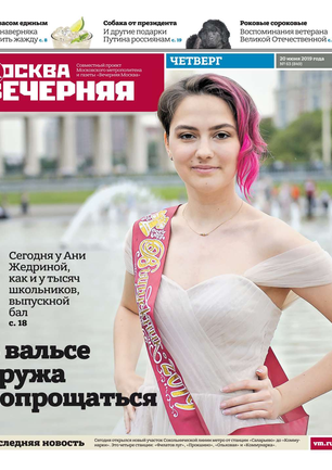 «Вечерняя Москва» — ежедневная российская вечерняя газета, старейшее из вечерних изданий в России, учрежденное в 1923 году. Выходит пять дней в неделю, кроме субботы и воскресенья. Отличается тем, что рассказывает о событиях еще не завершившегося дня. Оперативно освещает хронику и особенности жизни Москвы, охватывает все слои общества и большинство профессиональных и возрастных групп читателей.Издание представлено тремя выпусками – утренним ежедневным, вечерним (выходит три раза в неделю), еженедельным (выходит по четвергам).