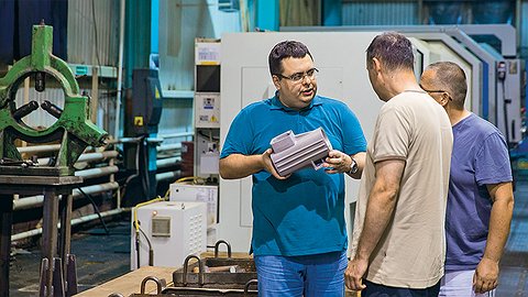 «Этот станок мы совсем недавно приобрели, а тот чуть раньше — и все импортное, европейское», — указывает Юрий Алексеевич широким гостеприимным жестом на ЧПУ-аппараты размером с малогабаритную комнату.