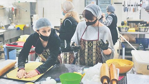 Одна из энтузиасток, активно помогающих карабахцам, — 48-летняя Лилит Меликян, невысокая женщина с короткой стрижкой. Вся ее семья из Нагорного Карабаха, сама она живет в Армении. «Когда это началось, мы думали, что как обычно — дней на семь—десять. Сначала приехали родственники, которых надо было разместить у себя. У нас есть свободная квартира и дача, и мы поселили, кого знаем, — рассказывает она. — Первым делом мы просто устраивали родных, а потом начали думать о тех, у кого нет родственников». Пробивная по натуре женщина руководит культурным центром «Терян», она художник-дизайнер, занимается национальным костюмом. «Мы превратили центр в штаб, куда люди могут прийти за помощью. В итоге за нами сейчас 3 тыс. человек, это женщины, старики и дети. И в какой-то момент мы начали понимать, что женщин надо чем-то занимать», — рассказывает она. «Мы объявили, что ищем работу, — присылайте нам вакансии. А когда люди стали присылать заявки, мы поняли, что на данный момент в Армении для беженцев просто нет работы. Стране нужны переводчики, педагоги и так далее. Найти какую-то работу, когда в Армении коронавирус, сложно. И мы подумали, что в Карабахе нравится в первую очередь еда», — говорит Меликян. Мы встречаемся с ней в ресторане «Мер тун», что переводится как «Наш дом», в нескольких километрах от центра Еревана в районе Бангладеш. На двух этажах ресторанной кухни работают около 20 карабахских женщин — одни делают «женгяловхац», карабахскую закрытую лепешку с начинкой из горных трав и лука, другие засаливают овощи. Соленья у карабахцев называются «ахтыряц», что дословно переводится как «положенное в соль». «И это умеют делать абсолютно все — и девушка 18 лет, и женщина шестидесяти», — отмечает Меликян. Ресторан начал продавать блюда карабахской кухни две недели назад. «Мне только сегодня позвонили три магазина, предложили поставить стойку и продавать без наценок», — делится Меликян. Это приносит $200–300 в день; деньги планируется делить между беженцами, в итоге должно выйти около $100 на человека за месяц. Женщины на кухне работают по очереди, 20–30 человек сменяют друг друга каждый день, чтобы заняты были по возможности все. Ресторану «Мер тун» помогают и другие ереванцы: кто-то — деньгами, кто-то — продуктами, а кто-то — стеклянной тарой. На верхней половине кухни, где солят овощи, работает и Елена Дадаян-Романова — она русская, но тоже приехала из Карабаха. 52-летняя Елена живет в Степанакерте с 1990-х годов, управляет художественной галереей. Они с Меликян познакомились несколько лет назад на профессиональной почве. Дадаян-Романова, хотя ей и пришлось покинуть привычные места, считает себя оптимисткой. Она уверена, что война вот-вот закончится, армяне вернутся в Карабах и что Россия не может не вмешаться. Елена родилась в Баку. Переехала в Карабах в 1988 году после погромов в Сумгаите, ее отец и муж — бакинские армяне: «Я покидала [Карабах], конечно, на короткий срок во время войны, но возвращалась, потому что у меня там муж похоронен». В этот раз она уехала на второй день войны. «В 1988 году, и 1991-м, и 1993-м, когда я уезжала, меня спасал мой русский фейс, — говорит блондинка Дадаян-Романова. — Там вообще очень много русских живут, и украинок, и белорусок, которые уехали из Азербайджана или вышли замуж за военнослужащих. Но сколько раз я уезжала — всегда возвращала