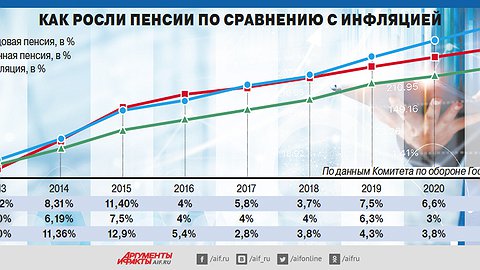 — Наш комитет настаивал на том, чтобы военные пенсии в 2021 г. были проиндексированы на 5,7–3,7% за счёт увеличения денежного довольствия военнослужащих на размер инфляции плюс 2% за счёт доведения «понижающего коэффициента» до 75,16%. Но наши предложения были проигнорированы«, — сообщили в Комитете Госдумы по обороне. Если страховые гражданские пенсии неработающим пенсионерам проиндексируют с 1 января на 6,3%, то военные — только на 3,7% и с 1 октября.