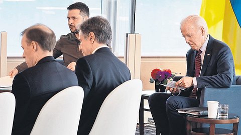 Встреча президентов США и Украины, прошедшая в воскресенье в отеле Grand Prince Hiroshima, стала кульминацией трехдневного саммита G7, главными действующими лицами которого оказались Джо Байден и Владимир Зеленский. Переговорам двух лидеров предшествовало их общение перед телекамерами, трансляцию которого вел телеканал CNN. В итоге 20-минутная видеозапись беседы появилась еще до пресс-конференции Джо Байдена, по завершении которой он улетел в США, чтобы уже вечером в воскресенье вернуться в Вашингтон.
