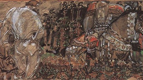 Вот только произошло это против воли основателя галереи Павла Третьякова. Единственная работа Врубеля, попавшая в собрание Третьякова при жизни знаменитого коллекцио­нера, оказалась там случайно. Более того – она вообще случайно уцелела. Акварельный эскиз «Хождение по водам» был спасён другом Врубеля, художником Константином Коровиным. Автор намеревался его изрезать и выбросить. Коровин выкупил эскиз и почти насильно всучил его Третьякову.